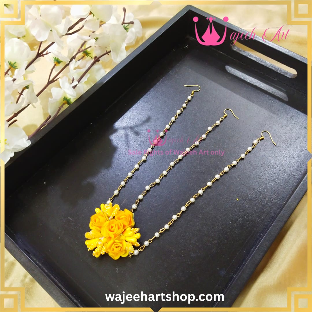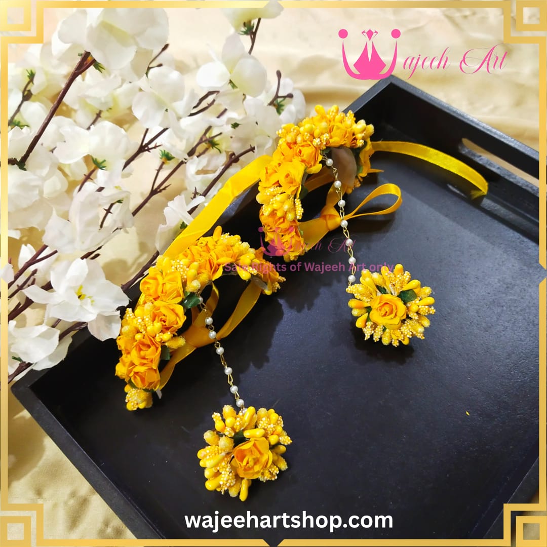 FJewel70 Yellow Dough Flower Jewellery Set for Mayon To Complete Your Look. It contains a Necklace, Earrings, Hand Bracelets, and Matha Patti.
