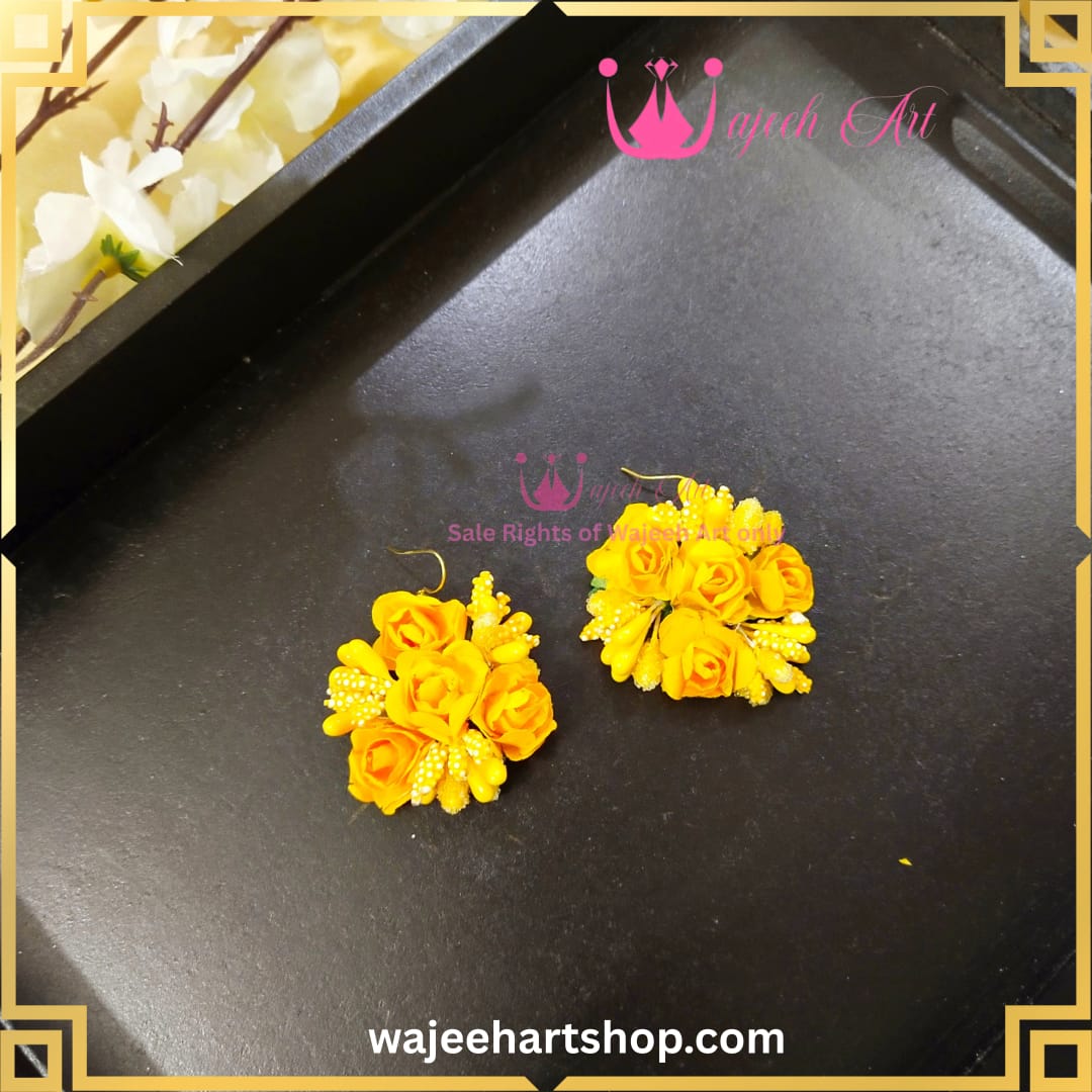 Bridal Handmade Yellow Dough Flower Jewellery Set For Mehndi and Mayon.