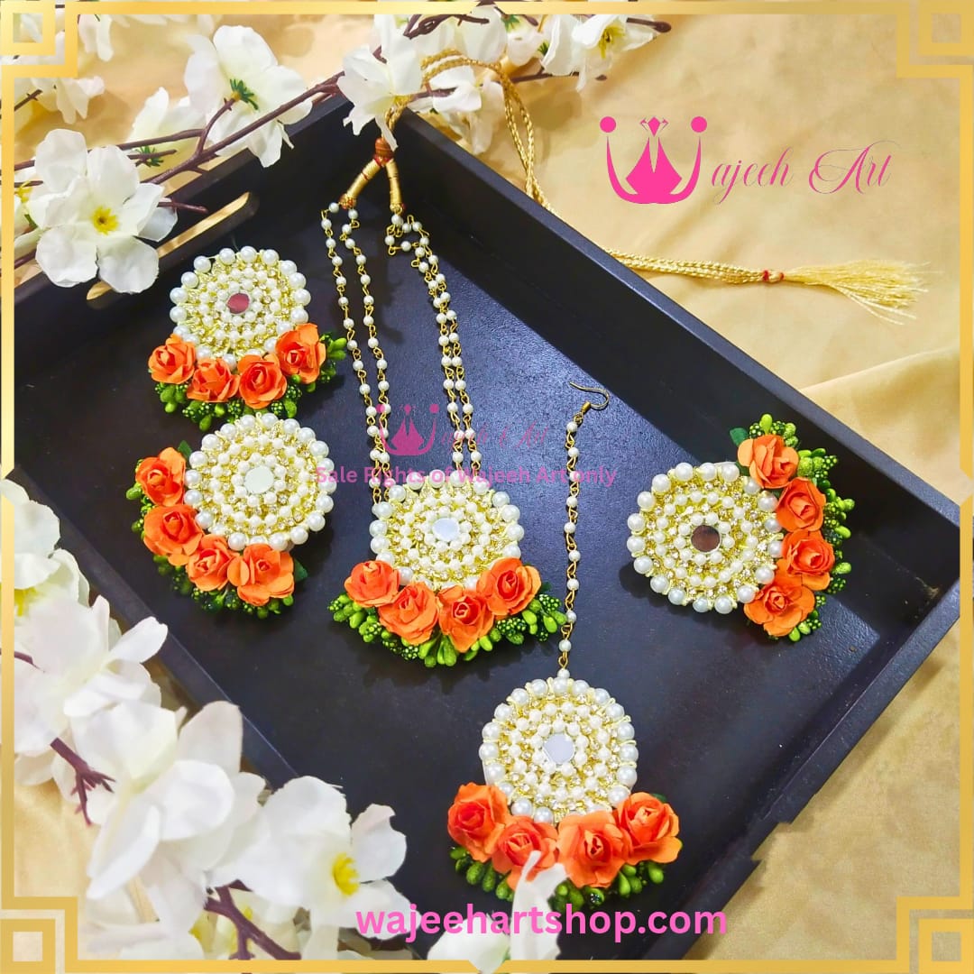 Handmade Artificial Pearl Dough Jewellery Set For Mehndi and Mayon.