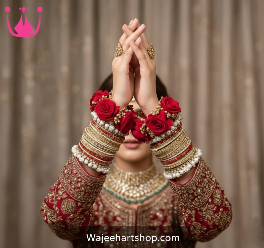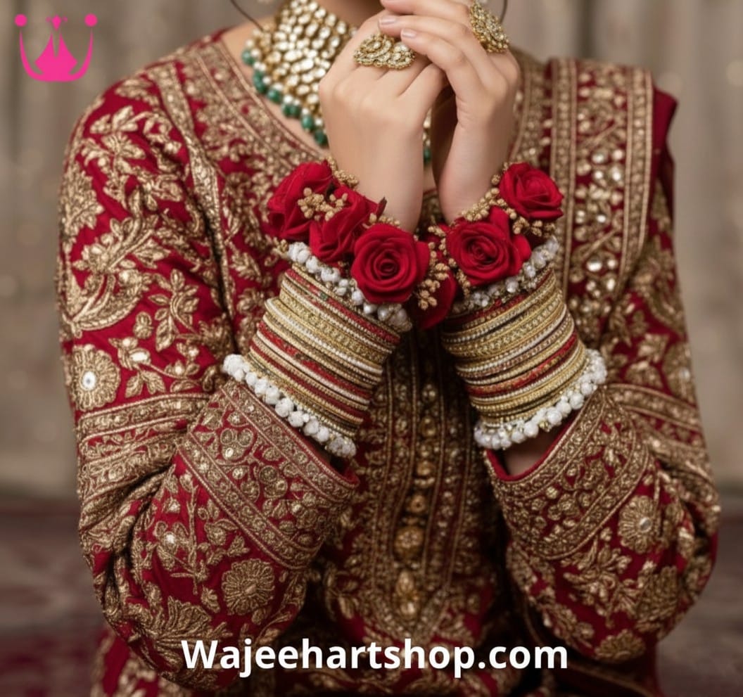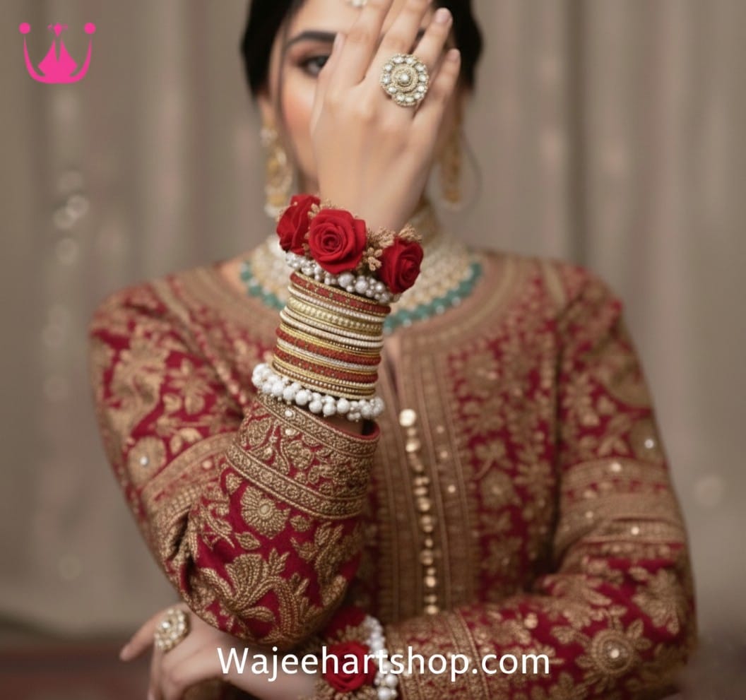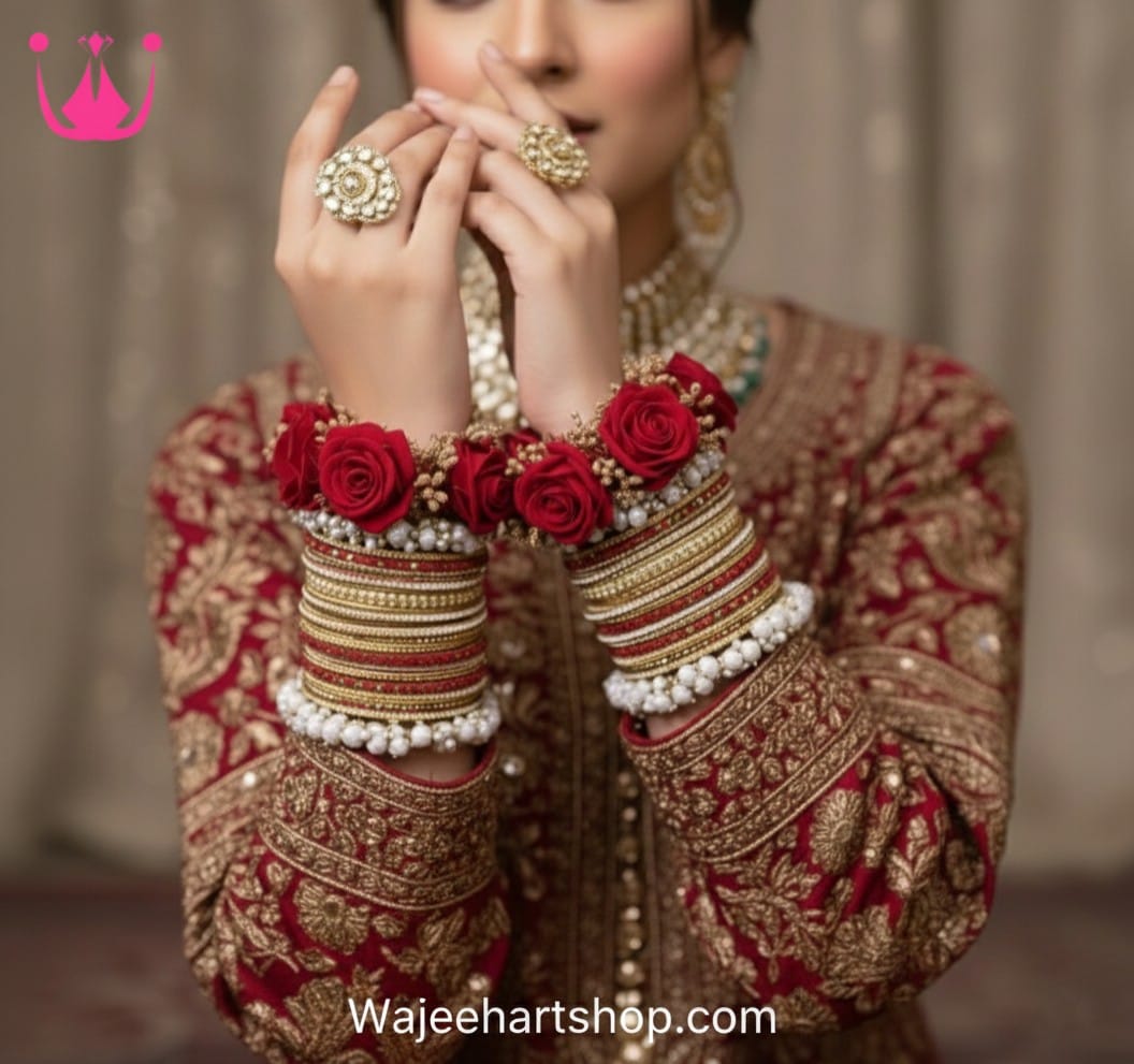Be the first to review “Kbangle466 Red Pearl Bridal Kundan Bangle Set with Gajray”